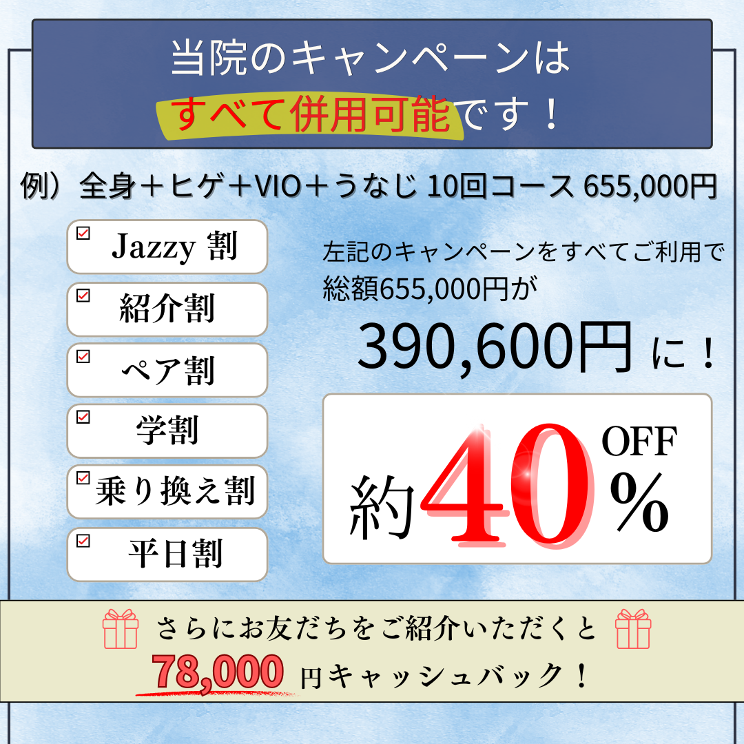 - 毛周期を考えてコース期限を長めに設定しています。皆様に理想的な間隔で通っていただきたいと思っています。
